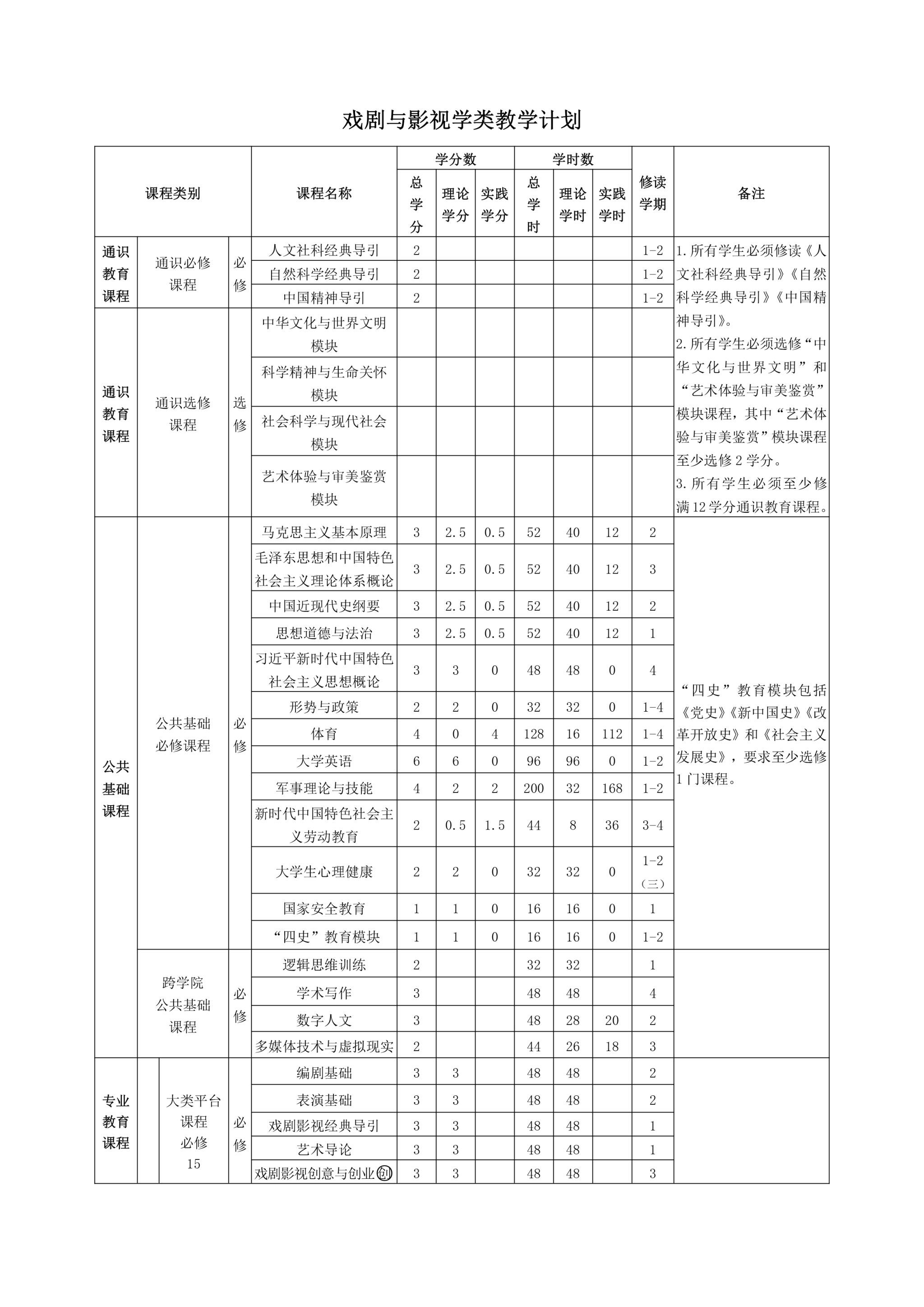戏剧与影视学类培养方案