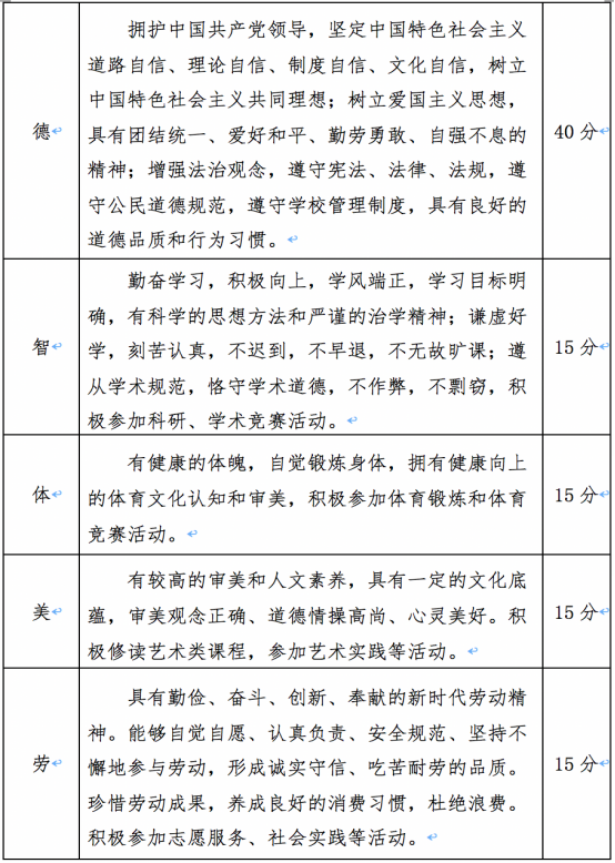 综合评分实行百分制,由“课程成绩分”和“高水平加分”两部分组成。综合评分=课程成绩分+高水平加分。具体分为以下三种类别: