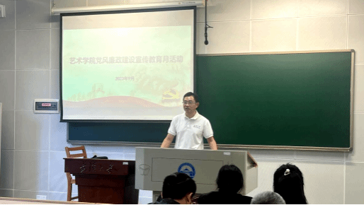 本网讯(通讯员:江玉琴 余伊哲)为全面贯彻落实学校党风廉政建设宣传教育月活动要求,增强党员干部廉洁自律意识,9月13日,艺术学院党委召开廉政党课暨警示教育大会。学院党委书记文云冬以《严守纪律规矩 强化责任担当》为题为全院教职工和学生党员代表讲授廉政党课。学院党委副书记李海波主持会议。