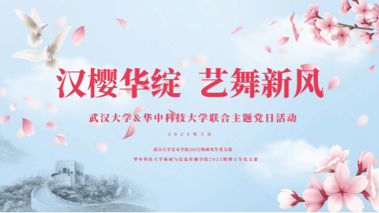 为深入学习贯彻习近平总书记重要讲话精神和全国“两会”精神,加强武汉大学与华中科技大学兄弟院校的联系,加强党性教育、促进党员之间的交流,2024年3月22日,乐动登陆入口2022级研究生党支部与华中科技大学新闻与信息传播学院2022级博士生党支部开展“汉樱华绽,艺舞新风”联合主题党日活动。乐动登陆入口党委书记文云冬、华中科技大学新闻与信息传播学院辅导员邵蔚楠以及两院17名学生党员、预备党员出席本次活动,活动由武大艺术学院2022级研究生党支部书记周郁葱与华科大新闻与信息传播学院2022级博士生党支部书记潘德音共同主持。