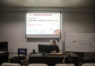 党委副书记李海波首先介绍了支部近期的工作安排并对后期活动的开展进行了部署。接下来,对所有成员讲了题为《立足管理岗位,发挥党员先锋模范作用》的党课。李海波围绕牢记党员意识、怎样发挥党员先锋模范作用、积极探索发挥先锋模范作用的途径与方法展开了讲述。