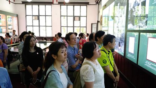 纪念馆参观结束后,培训班驱车前往韶山冲毛主席故居。坐落在茂林修竹、青翠环绕山冲内的主席故居自然古朴。1927年毛泽东曾回家乡考察湖南农民运动,此后直到1959年才再度回乡,就在韶山故居,主席深情写下《七律·回韶山》一诗:“别梦依稀咒逝川,故园三十二年前”,追怀之余又表达了“为有牺牲多壮志,敢教日月换新天”的革命豪情。培训班学员们依次参观了故居内部陈列,了解毛主席早年在故居生活学习、从事革命活动的历史,并于主席少年时代就学的南岸私塾内瞻仰青年毛泽东鎏金塑像,参观“毛泽东与他的儿女们”主题图片展览。