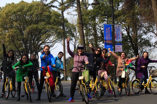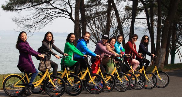 只见女教师们一个个装扮着青春靓丽的服装,每人骑着一样的小黄车,一路欢声笑语,迎着春天的气息,踏着青春的节奏,向着既定的终点骑行,而伴随着我们两位男性教师的一路摄影,无不成了东湖绿道上一道亮丽的风景线。