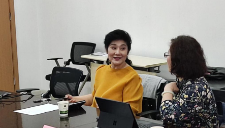 调研座谈会上,刘丹丽代表学校对宋鑫老师表示欢迎,并简要介绍了学校美育教学与实践的工作成果与特色,并从美育机制和职能、美育学分制度等方面分析了待解决的问题,最后提出了关于学校美育实践工作的发展目标。