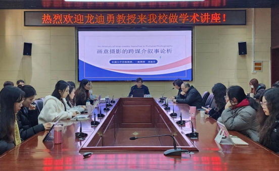2024年12月29日上午10时,东南大学首席教授、国家社科基金重大项目首席专家、中国中外文艺理论学会叙事学分会副会长兼秘书长龙迪勇教授受邀在我院作了题为《“画意摄影”的跨媒介叙事论析》的学术讲座。本次讲座由艺术学院院长、博士生导师孟君教授主持,吸引了本校众多师生积极参与