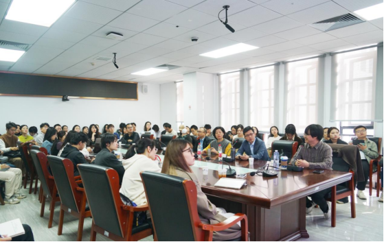 在交流环节,紧扣讲座主题,大家就论文电影承担互动与对话功能的可行性、论文电影作为一种电影类型、电影与游戏的关系等角度与姜宇辉教授进行了提问与交流。