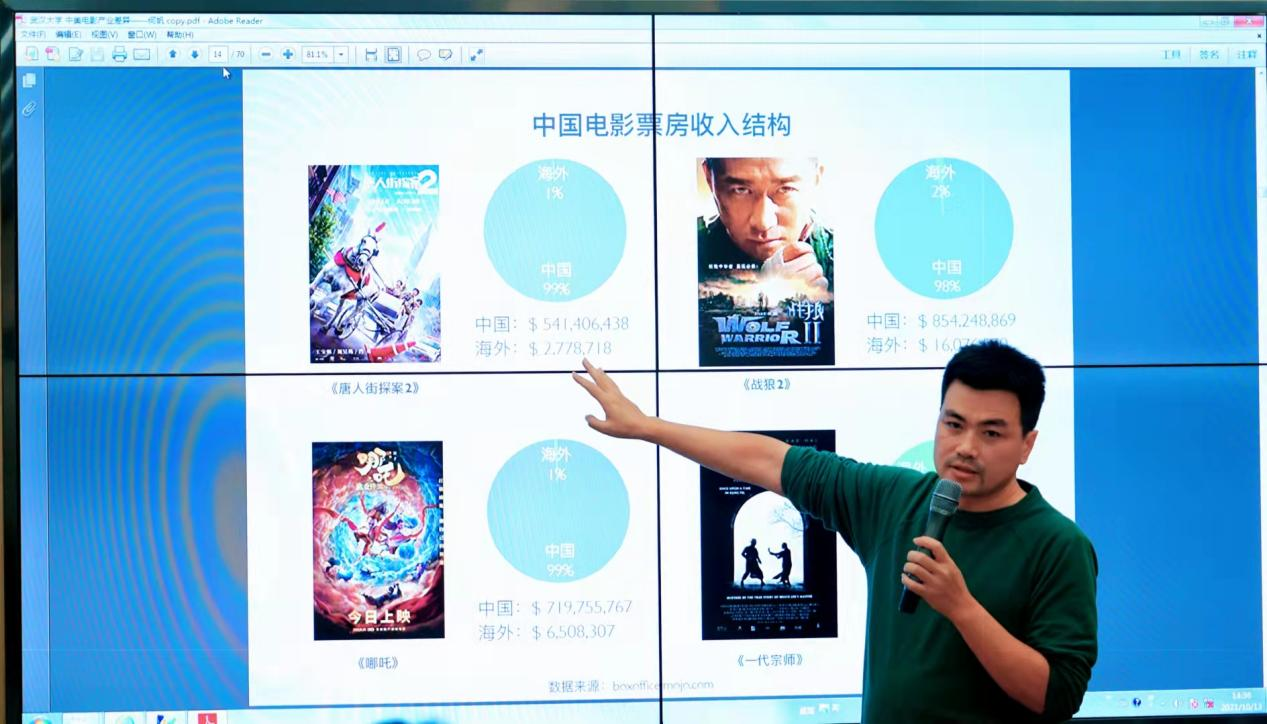 讲座中,何帆老师结合自己长年累月所积累的丰富的电影产业知识和经验,与青年学子分享了中美电影产业的市场主体和产品输出的差异。其次,就中美主要电影公司收入结构,包括票房、周边产品以及在主流媒体渠道上收益的不同进行了分享。最后,就中美电影发行制度和演员工会制度保障等方面做出了自己独特的见解。从而使得莘莘学子们了解了中美电影产业的现状,丰富了知识,增长了见识。