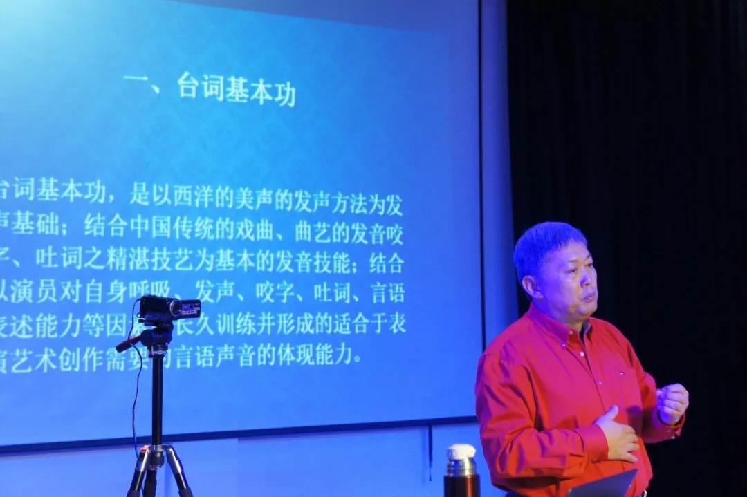 王丽萍书记登台致辞,通过讲述亲身体会强调言语基本功在演出创作和日常生活中的重要性。