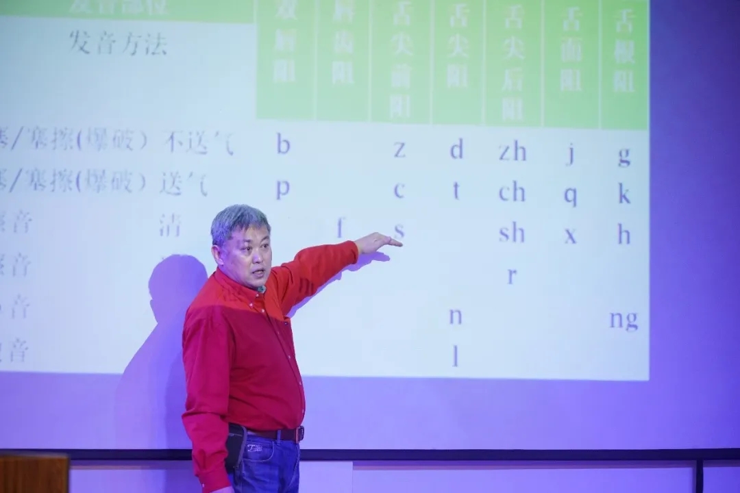 徐平教授说,汉语拼音对台词基本功的审理字音、规范字义、吐字有力、归韵到位、规范发音具有积极意义,对于“音包字”这样的台词问题,尤其要注重“展唇”和“音素过渡”的训练。表达能力同样也是演员的基本功之一,如何恰当的表达诉求,需要学生们在生活中不断地练习,把握好每一次当众表达的机会,只有很准确的表达自己的想法,才能在舞台上准确的表达角色。
