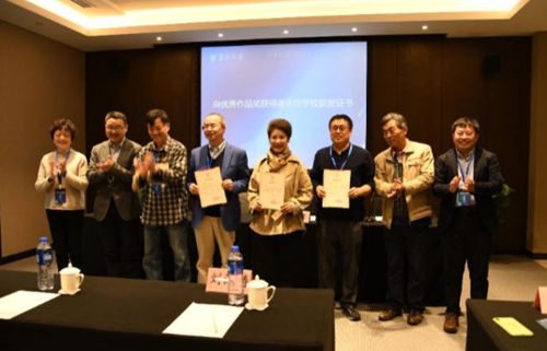 随后,艺术硕士教指委员会秘书长宋慧文回望艺术硕士设立的15周年,指出研究生教育已经提高到一个前所未有的高度,鼓励各高校提高硕士教育成果影响力,重视硕士教育工作的探索。最后,宋慧文秘书长宣读了全国艺术硕士研究生优秀毕业成果获奖者名单,我校由刘丹丽院长和韩一丽老师亲自指导的2015级硕士吴鹰、琪布日哈斯、罗亚棣等同学,以改编版小剧场戏剧《老妇还乡》成功获奖,教指委秘书长组丁凡、宋慧文、刘德坤为全国艺术硕士研究生优秀毕业成果获奖者的所在院校——中央戏剧学院、武汉大学和上海戏剧学院颁发了荣誉证书,并合影留念。