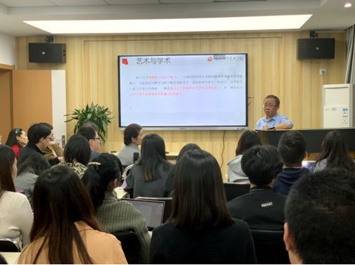 首先,李道新老师借由一篇公众号文章《我认识大量平庸得令人发指的文科博士》中所指出的“学术流水线、模式化现象”来引入,继而展开艺术与学术关系的讨论,以东西方两方面视野为例,向同学们介绍了不同视野下对于艺术与学术关系的界定也是不同的。李道新老师认为艺术与学术相辅相成,这为下面的阐述做了一个铺垫。