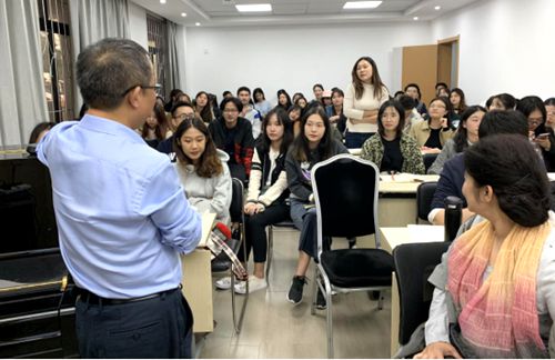 紧接着,李道新老师围绕“学术的艺术”与“艺术的学术”两方面展开讨论,一方面“学术的艺术”主要由艺术理论、艺术史和艺术批评构成,然而各艺术门类的基本原理和历史叙述等方面又截然不同,这就使得“艺术的学术”是多元的、复杂的议题。另一方面,李道新老师列举《德里达眼中的艺术》与哲学家德勒兹的例子,提出了“总体的艺术的学术关照如何建立”这一问题。随即,老师针对这一问题作出了解答,那就是要具备专业的角度、职业的心态以及独立的精神。李道新老师通过对学术现状的阐述,说明了个体选择的重要性,告诫同学们要摆正自己对艺术的追求,秉持职业操守与学术尊严。他强调:“学生要发展自己的兴趣,不要轻易改变自己的学术方向”,这一深切的教诲浸润进每位同学的心里,为同学们的学术道路指明了方向。