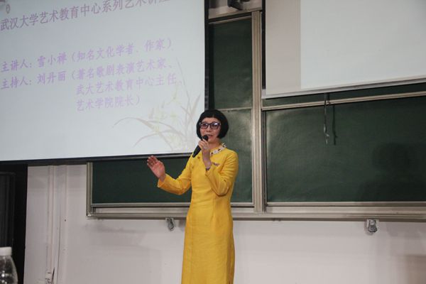 雪小禅老师首先和大家回忆了她与武大的缘分,数年之前的今天,她也曾来到武大进行讲座。大概是天意使然,曾经在武大接她讲座的学生,今天又联系到了。风趣幽默又不失情谊的开场故事,一瞬间拉近了雪小禅老师与武大学生之间的距离。