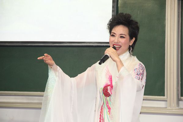 最后,雪小禅老师演讲结束后,由杨俊女士压轴登台,为我们带来了黄梅戏《女驸马》经典唱段《谁料皇榜中状元》。杨俊女士以她甜润的嗓音、细腻的演唱、俊俏的扮相和传神的表演,将即将结束的讲座推向了新的高潮。