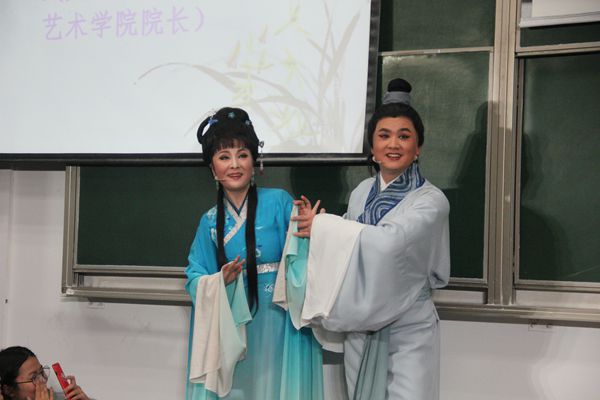 整场讲座,雪小禅老师不时与同学进行互动,使整晚的活动更加具有亲切感,使得观众深深感受到了艺术的魅力。并且将艺术与生活巧妙的串联在其中,精彩纷呈。期间,两位年轻演员给我们带来了精彩的黄梅戏《天仙配》和《对花》,让在场所有观众近距离欣赏了黄梅戏。