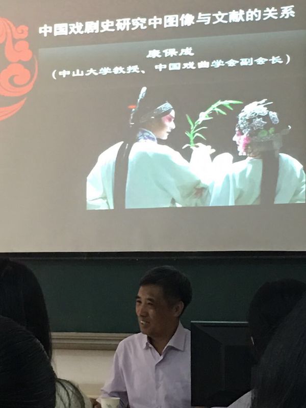 本次讲座,康教授以“读图时代”学术研究中图像、文献的关系切入话题,开宗明义地指出戏剧并不等同于剧本,研史者不可画地为牢,应展开跨学科、田野调查研究,将戏曲服饰、戏曲音乐、戏曲文物纳入戏曲史考察范围,地下文物与地上文献、外来观念与本土材料相参证,从方法论视角拓宽学术眼光,洞察戏曲现象。