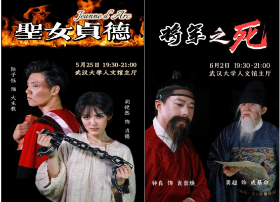正当钟良和龚超演得酣畅淋漓时,带着圣女贞德妆造的胡悦然突然上台打断排练,把钟良和龚超赶到台下,自己和饰演大主教的陆子钰排练起了《圣女贞德》,用歌剧和话剧的表演方式带着大家走进中世纪法国的审判台。不久,钟良、龚超和扮演场务的吴赛突然从上场口出现,在两个剧组争夺排练场地的过程中开启了一段贯通中西与古今的相遇故事。