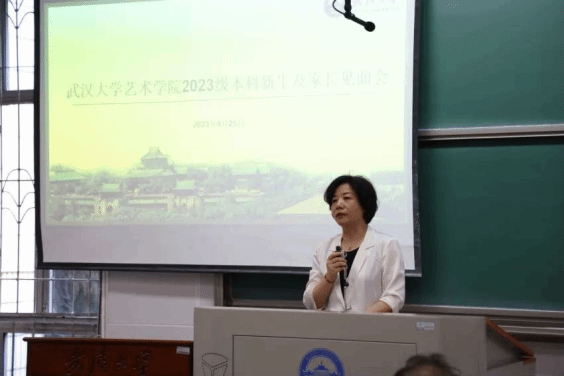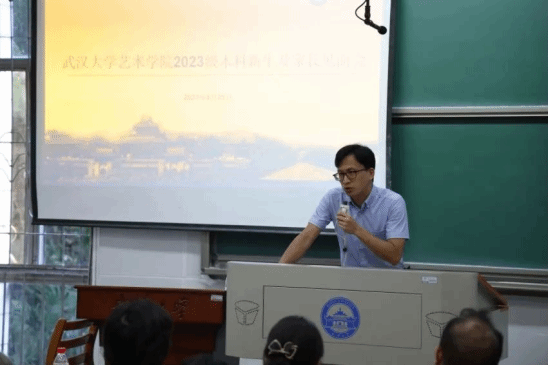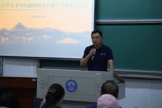 副院长王文斌教授负责艺术学院本科生教学工作,他对新生培养方案做出介绍。首先,武汉大学是杰出的综合类大学,学科齐全,十分利于综合人才的培养。同时,武汉大学的两大培养目标:成人教育和成才教育。成人教育:即培养道德完善、具有国际视野、能够引领社会发展的国家人才;成才教育:培养专业知识技能扎实的专业人才。并指出,武汉大学希望培养的是德才兼备的优秀人才。最后他对新生选课、修学分、第三学期等等学习上的问题作出了解释并进行了答疑解惑。