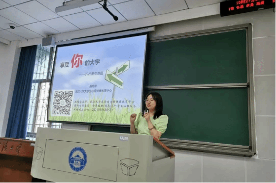 为帮助新生快速适应大学生活,及时调整心理状态,积极融入全新环境,艺术学院邀请武汉大学心理教育健康中心指导老师聂晗颖为新生开展心理知识分享。聂晗颖从“如何适应大学生活”和“如何实现发展自我”两个方面为新生提供了建议。她还从自己的角度出发分享自己从高中到大学心态上的转变,并给出了关于大家如何应对此变化的建议。不仅如此,她还为大家在大学生活中的人际交往、亲密关系的处理、学习压力的处理等方面均提出了建议。