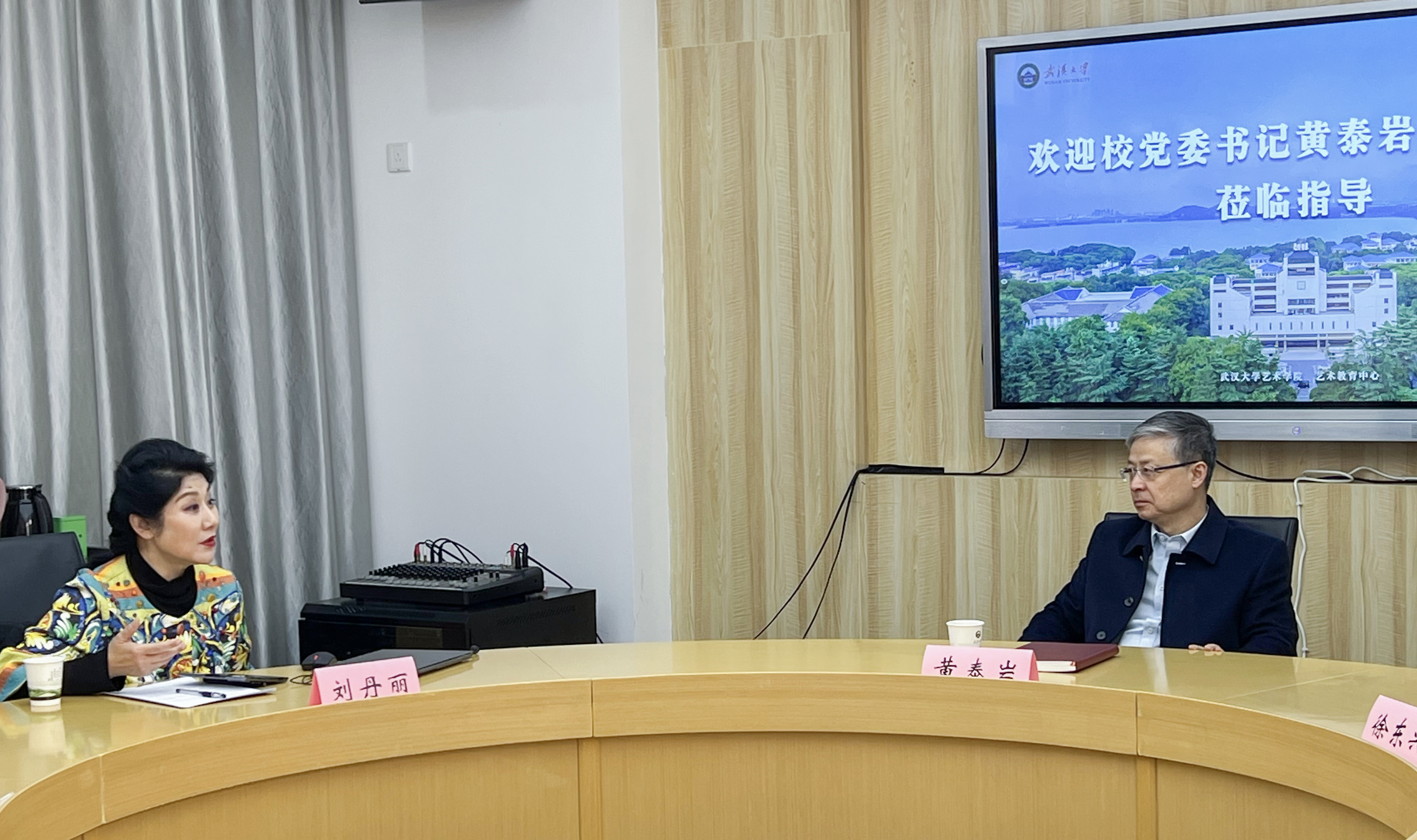 黄泰岩充分肯定了艺术学院、艺术教育中心对学校美育教育和校园文化发展建设做出的贡献。同时对学院和中心今后的工作提出三点要求:一是落实立德树人根本任务,要全面总结完善提升,发挥艺术的作用,用美育塑造新时代青年的人生美学,汇聚校内外优质教育资源,为全校学生打造跨学科交叉融合育人平台,努力构建德智体美劳全面发展的高水平人才培养体系。二是推进学科建设 、教育教学、学术研究高质量发展。学院两个系之间既有关联性,也有自身特色,要选择合适的赛道,激发教学科研内生动力,补足短板发挥优势,在“学科建设年”推动学院学科建设、教学科研再上新台阶。三是建强教师队伍建设。加强对学科带头人、青年教师梯队建设,以建设高质量艺术教师队伍为着力点,加强武汉大学高质量美育教育体系建设。