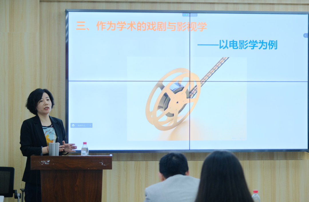 随后,她以自己所从事的电影学研究的例,介绍了如何去进行学术研究和学术创新。