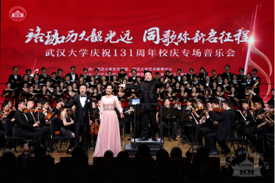 本网讯(通讯员:通讯员杨姗、何睿、刘华依)11月28日晚,以“珞珈历久韶光远,同歌弥新启征程”为主题的武汉大学庆祝131周年交响合唱音乐会在武汉大学爱平音乐厅隆重上演。校长张平文院士,党委副书记万清祥,副校长李资远、朱德友,党委副书记楚龙强,校长助理徐东兴,陈东升等校友及嘉宾莅临本次音乐会现场。此次音乐会由乐动登陆入口、艺术教育中心主办,武汉大学大学生艺术团交响乐团与海燕合唱团联袂呈现。