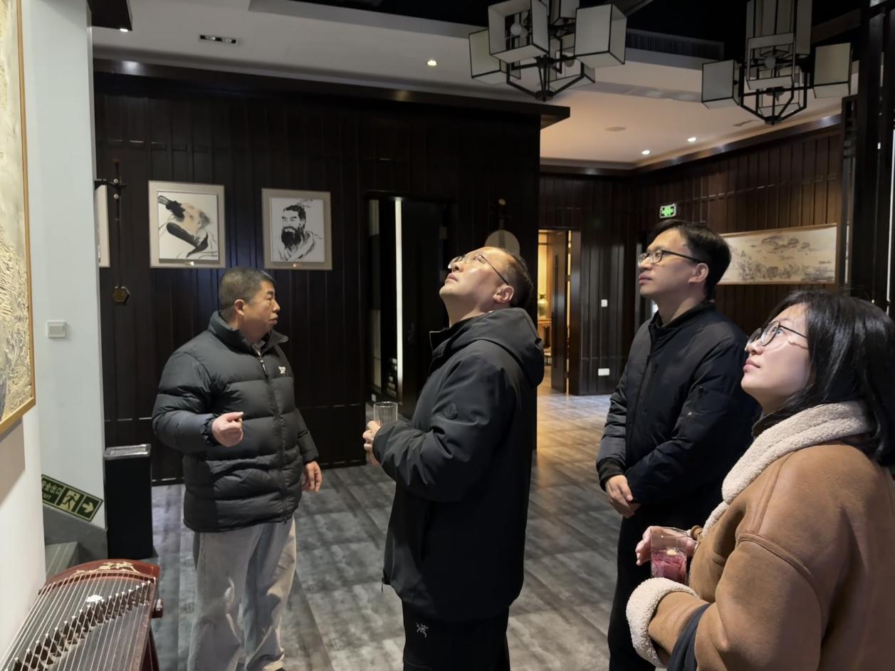 会后,文云冬一行实地参观三基新视听科技·楚风琴韵文化艺术创意空间·闻一多国学讲堂·柳大华棋院,着重关注与学生影视实习实践相关部分,体验杜比环境音效与杜比影院等,初步了解基地环境与建设情况,达成战略合作意向。