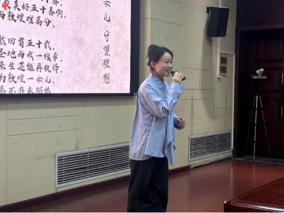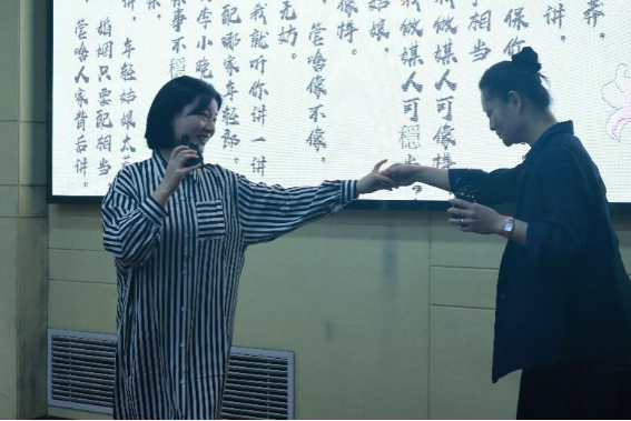 现场演出环节,沪剧院演员演绎了《罗汉钱·燕燕做媒》《芦荡火种·开方》《敦煌女儿·守望理想》等剧目片段,展现了沪剧的艺术魅力与时代精神,赢得在场师生热烈掌声。导演沈刚还分享了《罗汉钱》的创作背景,强调该剧聚焦婚姻法实施后的社会变革,展现女性觉醒与现实主义美学的结合。