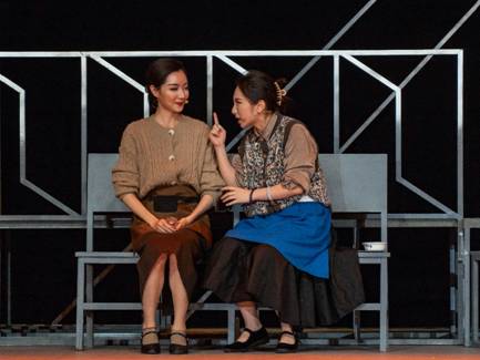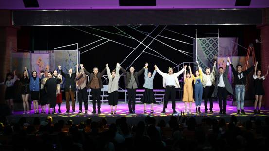 2017级表演班毕业大戏导演万松玲老师和台下观众亲切互动,并向观众介绍了每一位幕后工作人员和演员同学们,言语中满是激动和面对毕业的同学们的不舍。