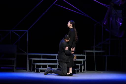 本网讯(通讯员:王宇祺)5月22日21时,在汗水与泪水的交融中,掌声与鲜花的拥簇中,回忆和展望的美好里,为期四天的艺术学院2017级戏剧影视表演班毕业大戏《楼梯的故事》在人文馆主厅圆满落下帷幕。