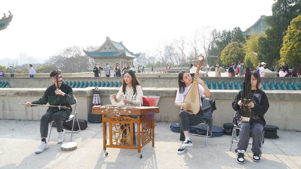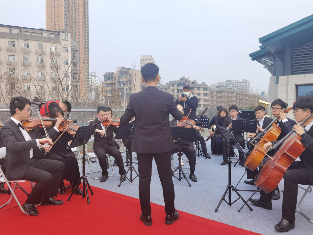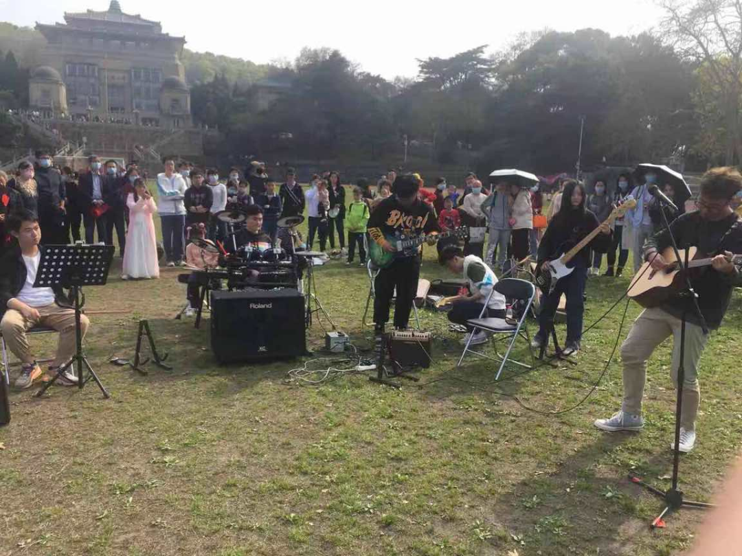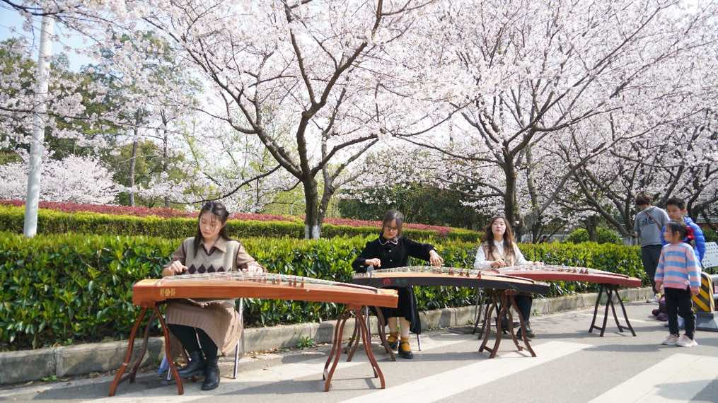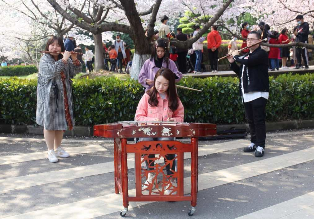 武汉大学艺术教育中心自接到学校任务后,首先在3月13日、14日白天策划了第一场迎宾仪式与沉浸式演出活动。该活动由武汉大学大学生艺术团民乐团、交响乐团、声乐团、电声乐团的同学们在卓尔体育馆、樱花树下、樱顶为抗疫医护、赏樱游客们带来一场场精彩的沉浸式表演。演出主要覆盖卓尔体育馆、行政楼赏樱区、樱花大道、樱顶、912操场等游园热门地点。