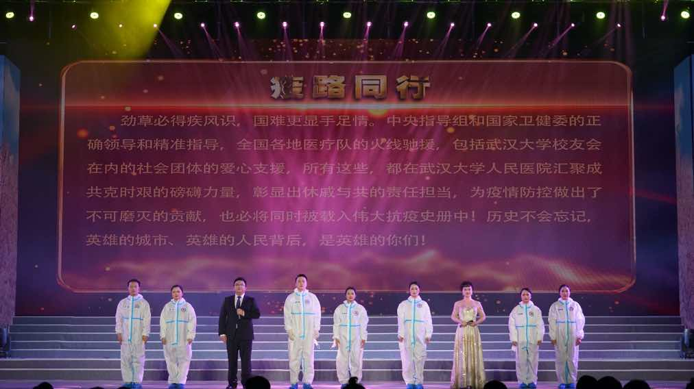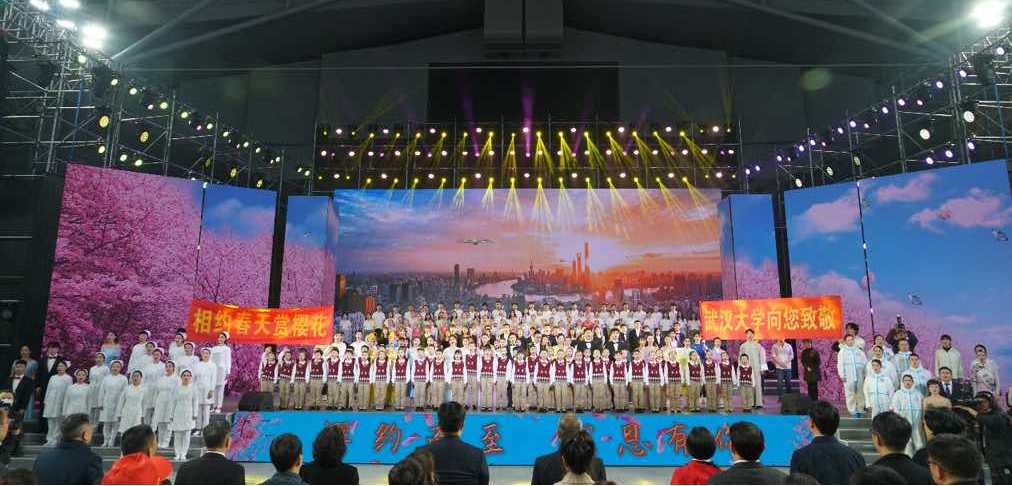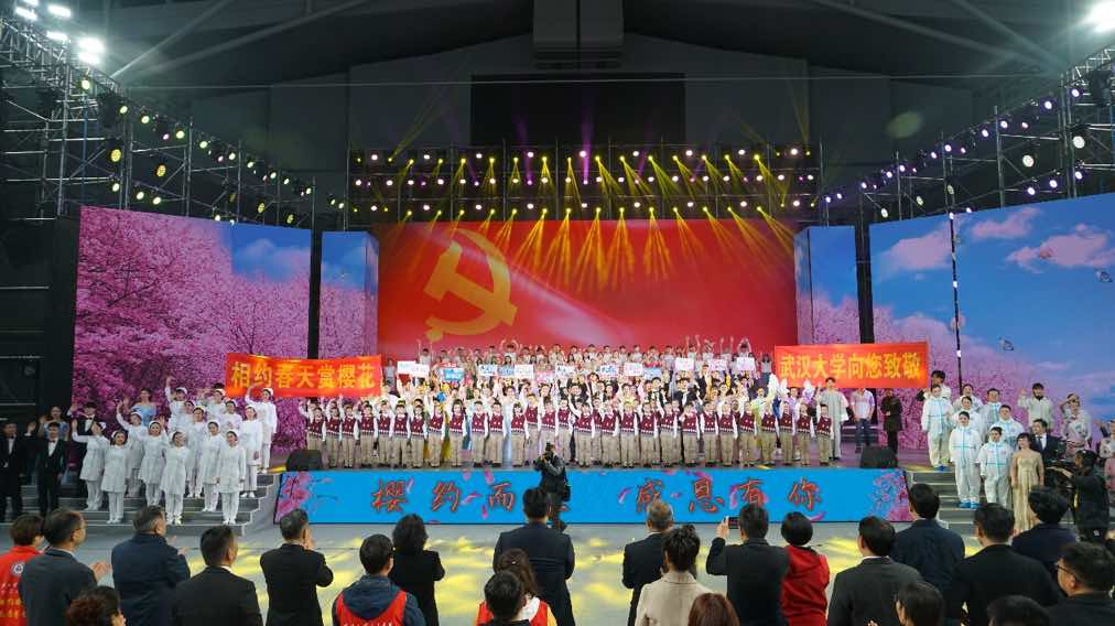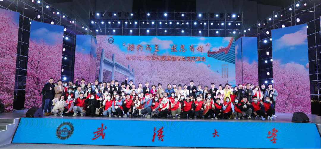 由武汉大学党政办公室主办,武汉大学艺术教育中心、艺术学院承办,武汉大学党委宣传部、共青团武汉大学委员会协办的“樱约而至 感恩有你”武汉大学致敬抗疫英雄专场文艺演出,在3月13日晚,将致敬英雄活动推向了高潮。学校卓尔体育馆座无虚席,一个个节目激动人心,观众掌声热烈,人民日报、央视等新媒体平台直播了这场致敬抗疫英雄文艺晚会,全网播放量逾200万,好评如潮。