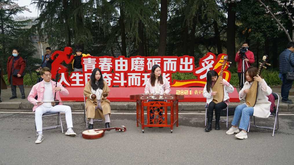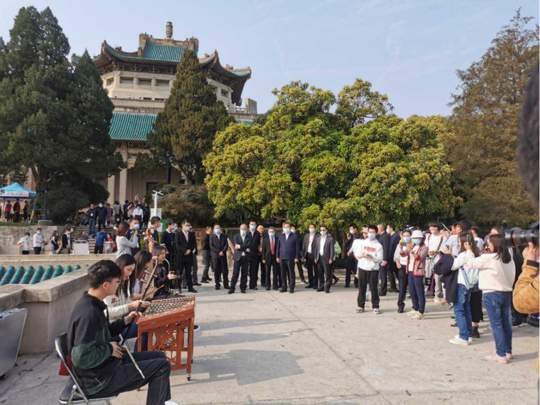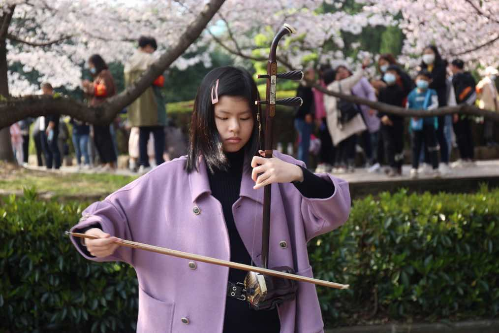 演出当天,武汉大学党委副书记屈文谦,不辞辛劳亲自来到演出的各个分布点,对同学们进行指导并对大家进行鼓励。通过在场观众连连不断的掌声可以看出,武汉大学艺术教育中心和大学生艺术团的“沉浸式”演出,不仅给援鄂医护、赏樱游客提供了一种多样的赏樱体验,更展示了武汉大学作为一所综合性一流大学的高艺术水准。