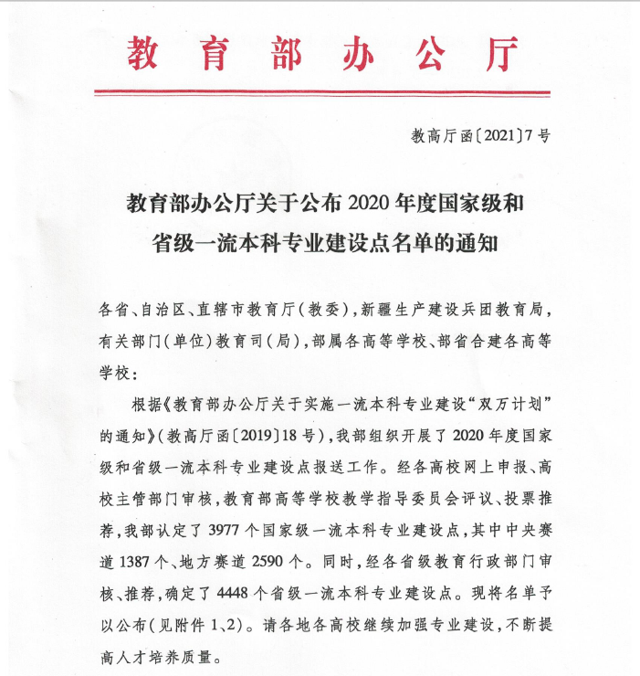 本网讯(通讯员:王文斌)近日,教育部办公厅公布2020年度国家级一流本科专业建设点名单,艺术学院的戏剧影视文学专业入选国家级一流本科专业。