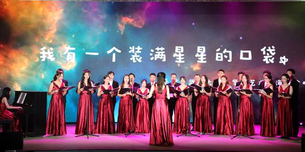 “不忘初心,满怀人民的向往”“追随着你,实现百年梦想”,动感的音乐、炫目的灯光,表演者身着蓝白迷彩服,尽情歌唱。在全面建成小康社会即将来临的今天,合唱团的同学唱出了我们对于祖国富强,民族复兴的强烈渴望与坚定信心。