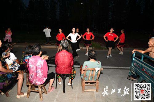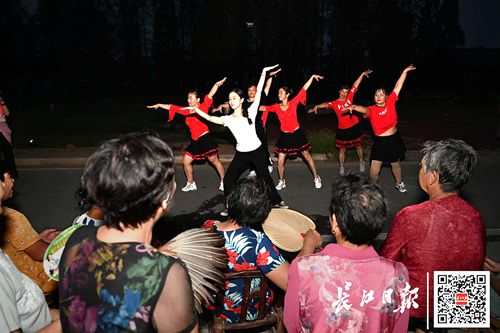 长江日报讯(记者金思柳、通讯员高国鹏)9月9日,武汉一处乡村上演了令人惊讶的一幕,当即刷屏现场观众的朋友圈。“草原上最美的花火红的萨日朗……”画面中一位年轻女孩带领着一群村民跟着歌声翩翩起舞。