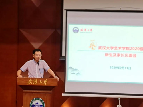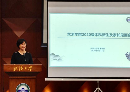 首先,艺术学院院长、艺术教育中心主任、国家一级演员刘丹丽教授致欢迎词,寄语同学们在武大的四年成就最好的自己,谆谆嘱托传达出殷切的期盼。