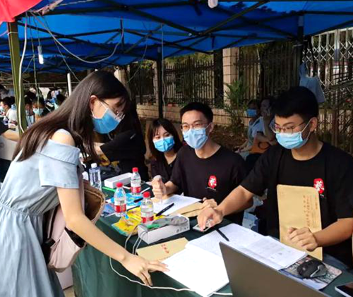 9月11日清早,艺术学院学生会的成员们就在梅园小操场布置好了艺术学院的专属迎新点,热切地盼望着萌新们的到来。八点刚过,怀揣着憧憬与向往的新生们陆续在报到处完成了报到,并领取了学院为每一位2020级同学精心准备的大礼包。相信在学院的大家庭里,新生们一定能快速适应大学的节奏与频率,创造属于自己的大学记忆。