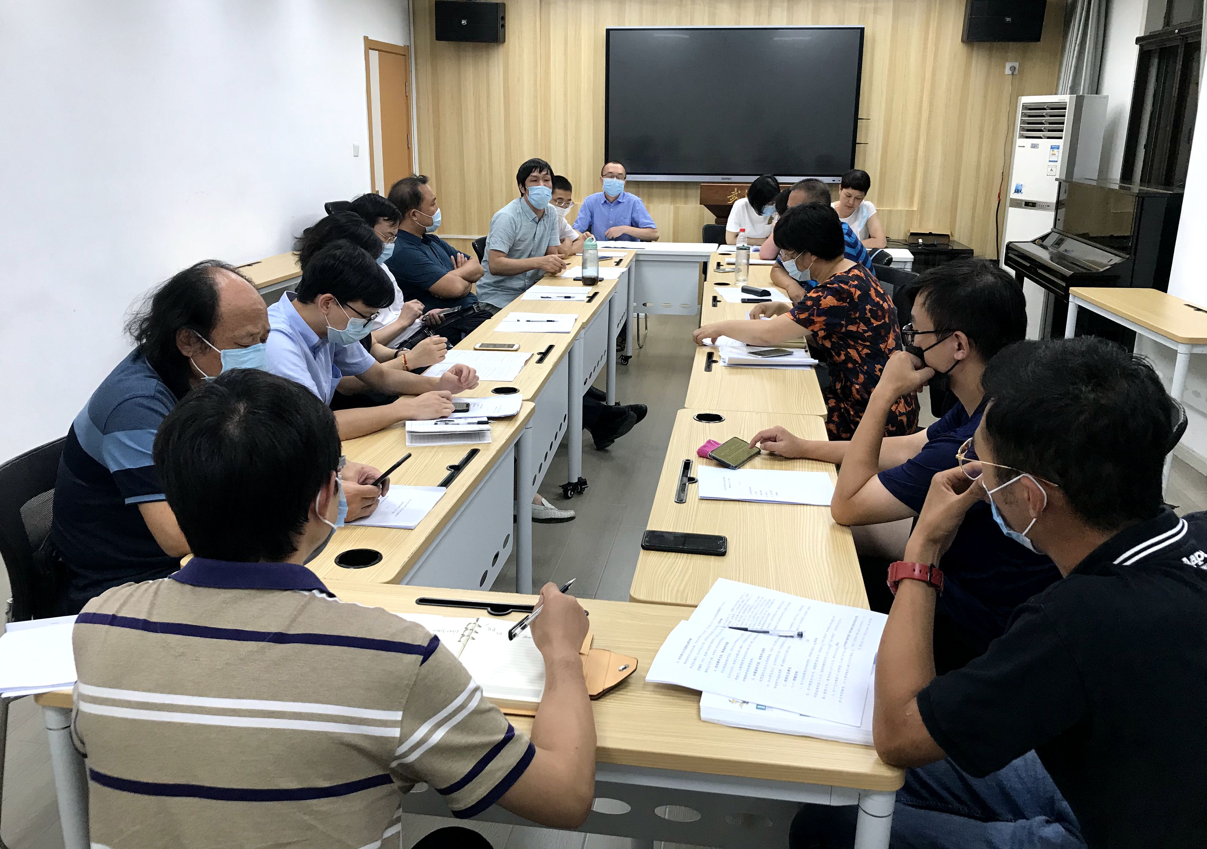 李海波副书记和刘涛副院长分别就新学期开学的相关要求与“十四五”规划编制的筹备工作情况,作了说明。随后,全体教职工以系为单位分成两个小组,进行“十四五”规划编制的研讨交流。彭万荣教授谈到,学科建设是学院发展的命脉,需将一级学科博士点申报作为我院“十四五”规划的重中之重,瞄准申报指标,创造有利条件,为学院教师队伍建设和人才培养提供有力支撑。孟君、汪余礼等教授指出,要加强梯队建设,补充中青年师资力量,根据研究方向形成科研团队,提升科研产出的效率。黄献文副院长提出,学院要继续坚持“一体两翼”的结构,从人才引进、教师招聘、博士点申报等方面积极争取学校的政策支持。陈晖、吴靓等老师建议,建设创作、表演、通识课等研究团队,推动疫情题材的剧目创作和艺术活动展演。吴博、洪一鸣等老师建议,优化艺术团管理机制,增设戏剧团,完善非专业学生的吸纳及培养政策。易栋和王珊老师分别代表两个小组进行了总结发言。