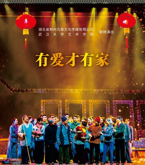学校艺术教育中心建立后,一直注意把文艺评论与文艺创作、 名家示范实践与示范效应研究紧密结合起来,以评论推动创 作,以创作实践引发示范效应,复以评论优化创作实践,努 力走出一条创作与评论、演出与美育、研究与实践互相促进的新路子。《有爱才有家》就是对“编-导-演”三位一体的培养新模式所做出的探索。该剧以公安县麻豪口镇福利院原院长刘德芬为原型,选取典型事件,生动呈现了这位“全国孝亲敬老之星”20余载如一日的坚守,孝老如父、爱孤胜子、视院如家,从青丝变白发,无怨无悔,为福利院的孤、寡、残、幼撑起一个温馨大家庭,直至患病离世的感人事迹,人物真实鲜活,剧情催人泪下,被誉为“改善民族歌剧创作生态”的“中华民族新史诗”。该剧先后入选2017年“中国民族歌剧传承发展工程”重点扶持剧目,及2018年“中国民族歌剧传承发展工程”滚动扶持剧目。同时,该剧还遴选进入“第三届中国歌剧节展演”和“全国优秀民族歌剧展演”,在京、豫、湘、闽演出,并获得湖北省第十届“五个一工程”优秀奖,主演刘丹丽也获得了第十六届中国文化艺术政府奖“文华表演奖”,在全国产生较大反响。