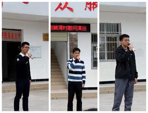 随后,师生进行了慰问演出。参加演出的师生均以高度的政治觉悟积极参与此次活动,在此之前,他们经过多天的认真排练,为的就是能给乡亲们带来一场精彩的演出。