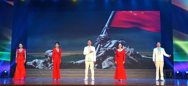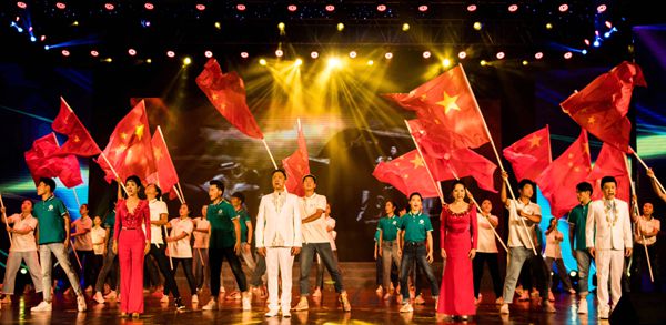 节目伊始,伴随着大屏幕上经典爱国电影的剪辑片段,老师们饱含深情地朗诵当代诗人舒婷所创作的著名爱国诗歌——《祖国啊,我亲爱的祖国》。朗诵者们情感充沛,慷慨激昂,将爱国之情溢满全场。朗诵结束后,伴随着歌舞,同学们挥舞着国旗,更是将现场氛围推向高潮。
