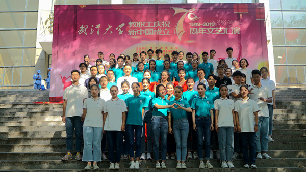 本网讯(通讯员:汤文婧、周子琦)9月21日至22日,由武汉大学工会主办的“教职工庆祝新中国成立70周年文艺汇演”于信息学部大学生活动中心如期举行。在本次文艺汇演比赛中,艺术学院工会带来的原创情景诗画节目《我亲爱的祖国》紧扣爱党爱国主题,表演形式富有新意,最终取得了一等奖的好成绩。