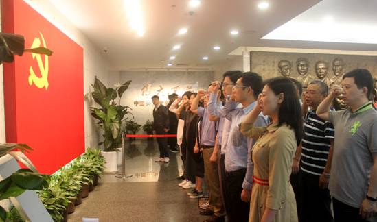 进入门厅,大家面对党旗,在院党委书记丁康的领誓下重温入党誓词。在讲解员细致生动的介绍中,全体党员认真浏览并回顾了中国共产党诞生的历史,细致地观摩纪念馆中珍贵的文献资料,重温党领导全国各族人民进行的革命战争史和建设奋斗史。一张张弥足珍贵的照片、一件件充满历史记忆的文物、一个个生动复原的历史场景,把大家带回到中国共产党从诞生到发展壮大的光辉岁月。