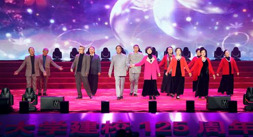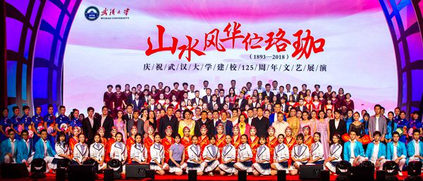 珞珈之山,东湖之水。山高水长,流风甚美。武汉大学建校125周年文艺展演在恢弘震撼的交响合唱《弦歌惶惶》中拉开序章,一曲弦歌尽展煌煌武大的无限风华。中国科学院院士徐红星,常务副校长谈广鸣,副校长周叶中,校党委副书记赵雪梅、沈壮海,副校长唐其柱,校友代表和师生等八千余人观看演出。晚会由4个篇章组成:郁郁珞珈山、奕奕珞珈人、眷眷珞珈情、浩浩珞珈魂。交响合唱、情景音画、舞蹈、民乐合奏、留学生献唱、情景朗诵、旗袍秀、师生合唱……一个个精彩的节目,武大人同心相连欢庆母校华诞。
