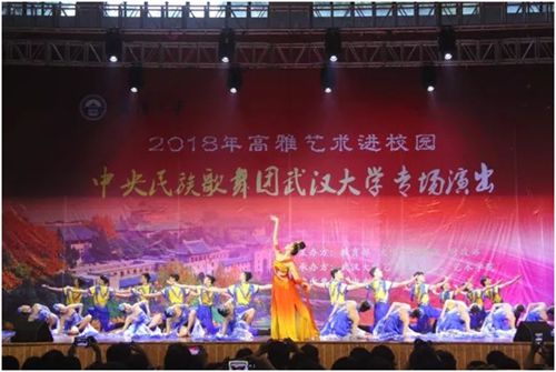 本网讯(通讯员:曹祎)为了将高雅艺术融入校园文化建设,丰富校园文化生活,达到艺术教育“润物无声、育人无形”的效果,引导大学生弘扬优秀民族文化,提高艺术和文化素养,促进大学生全面发展,2018年高雅艺术进校园活动走进武汉大学。6月21日19点由教育部、文化和旅游部、财政部主办,武汉大学艺术教育中心团委艺术学院承办的中央民族歌舞团武汉大学专场演出在武汉大学大学生活动中心进行。中央民族歌舞团党委副书记、纪委书记丁蔷,中国科学院院士、中国工程院院士李德仁,校党委副书记赵雪梅,在校师生、离退休教师等1500余人来到现场观看演出。
