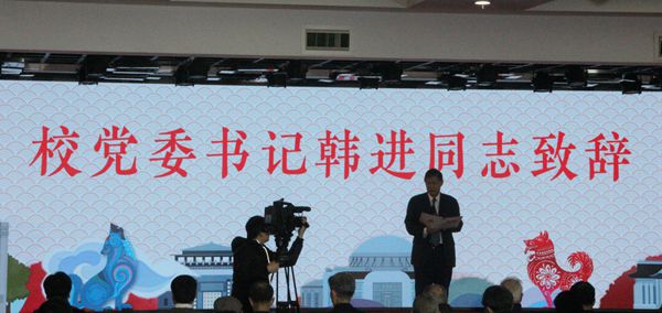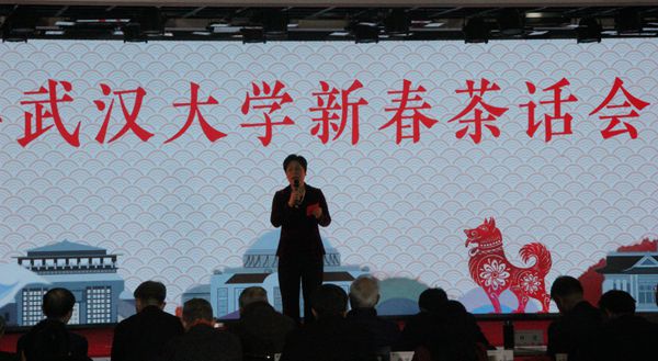 韩进代表学校发表新春贺辞。他向一直以来关心、爱护、支持武汉大学的上级领导和社会各界朋友及为学校发展做出重要贡献的老领导、老专家、老同志表示崇高的敬意和衷心的感谢,向全校师生员工、海内外校友致以最诚挚的问候和最美好的祝愿。
