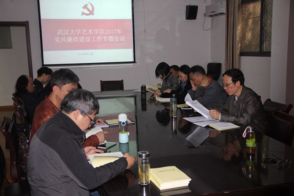 2017年4月13日下午,艺术学院召开2017年党风廉政建设工作专题会议,深入学习贯彻十八届六中全会、中纪委七次全会和习近平总书记最新重要讲话精神,总结2016年党风廉政建设工作,传达了学校2017年党风廉政建设工作要点,部署了艺术学院2017年党风廉政建设工作任务,集体学习了《作风建设实用手册》。