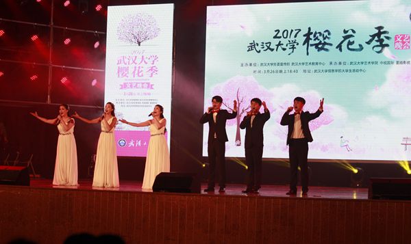 本网讯(通讯员:艺轩)阳春三月,樱花如雪。樱花已成为武汉大学的靓丽标识,声名广扬,引人流连。3月26日晚,由武汉大学艺术教育中心主任、艺术学院院长统筹编排,武汉大学党委宣传部、艺术教育中心联合中视国际星皓影视举办的“2017武汉大学樱花季文艺晚会”华丽上演,赢得了武大校内外观众的青睐。