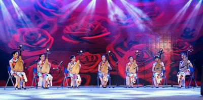 轻拢慢捻抹复挑,琵琶重奏让观众虽身在舞台前,但心仿佛早已穿越回那神秘的另一个时代,生动的表演让人流连忘返。